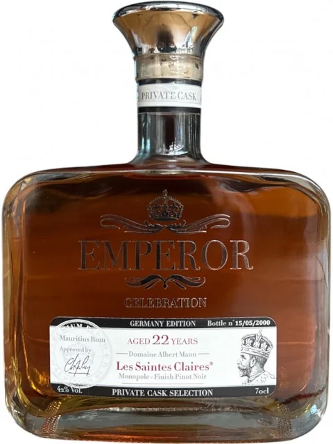 Le Emperor Celebration Cask Finish Sainte Claire Pinot Noir est un rhum mauricien raffiné, bénéficiant d’un affinage en fûts de Pinot Noir du domaine Sainte Claire. Ce finish unique lui apporte une dimension aromatique élégante, mêlant fruits rouges, épices et notes boisées. Rond, complexe et original, c’est un rhum de dégustation qui séduira les amateurs de profils fins et expressifs.